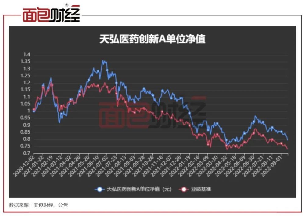 截至2022年9月19日(下同),天弘医药创新A单位净值跌至0.8元以下,成立至今仍处于亏损状态。该产品为天弘基金主动权益类产品中规模靠前的一只基金,成立至今最大回撤已超过44%。