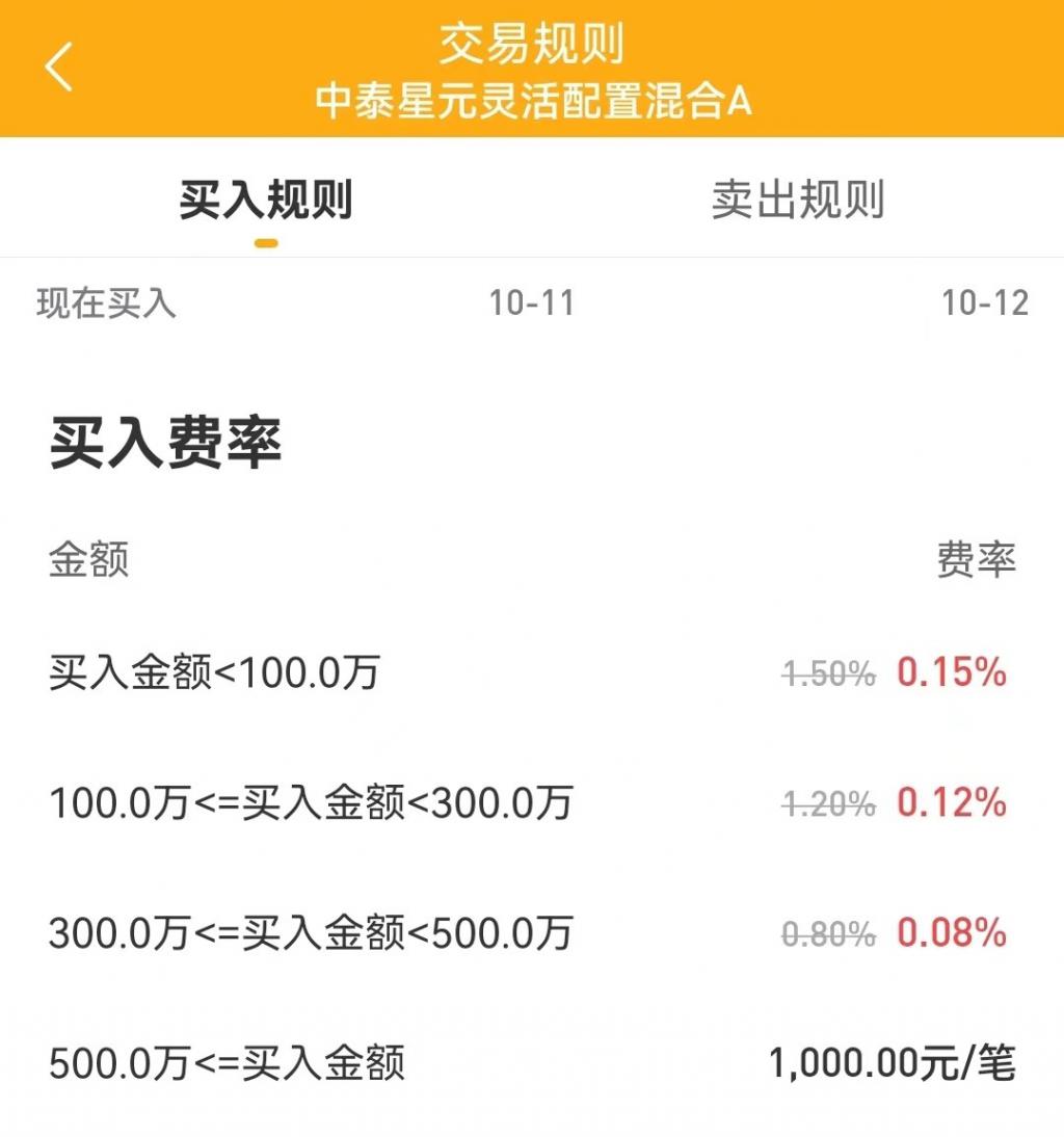 (下方以中泰星元灵活配置混合 A 举例,在某银行和蛋卷基金的费率对比)