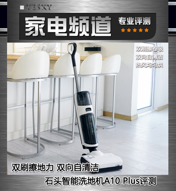 然而,洗地机拖地后的水渍残留、滚刷毛发缠绕、机身重量大使用不便、贴边清洁不干净、滚刷自清洁不彻底导致发臭等问题一直影响着用户的使用体验。近日,双滚刷洗地机引领者石头科技全新推出新一代旗舰洗地机产品——石头智能洗地机A10系列,它在清洁时着重增强了滚刷对地面的摩擦、力度与时长,以双刷“擦卷吸”带来更为强劲的清洁能力和更全面的清洁范围。针对洗地机刷头自清洁效果差、容易藏污纳垢等问题,创新性加入了双向自清洁功能,对滚刷进行抗菌烘干,避免潮湿所带来的发霉发臭。本次天极网评测室收到的是这款石头智能洗地机A10 Plus,下面让我们通过具体的评测来了解一下它的具体功能。