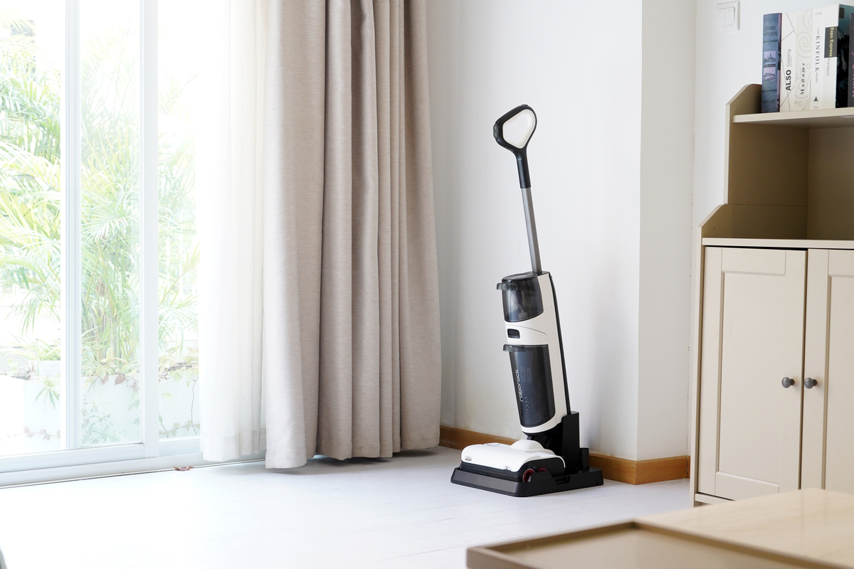 一般来说,一次完整的地面清洁过程主要包括扫地、湿润拖布、拧干拖布、拖地、清洗拖布、晾干六个环节。晾干虽然不怎么需要人手的参与,等待晾干的过程是漫长的,而且潮湿不通风环境下容易滋生细菌,散发异味,在一定程度上增加了我们再次清洗时的负担。