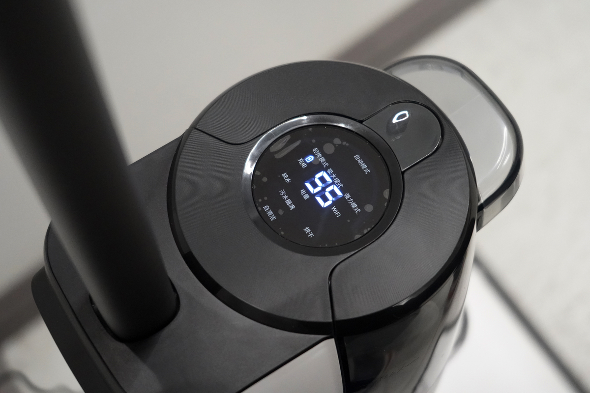 往下是石头A10 Plus的LED显示屏区域,直观显示当前工作模式、工作电量、水箱状况等信息。