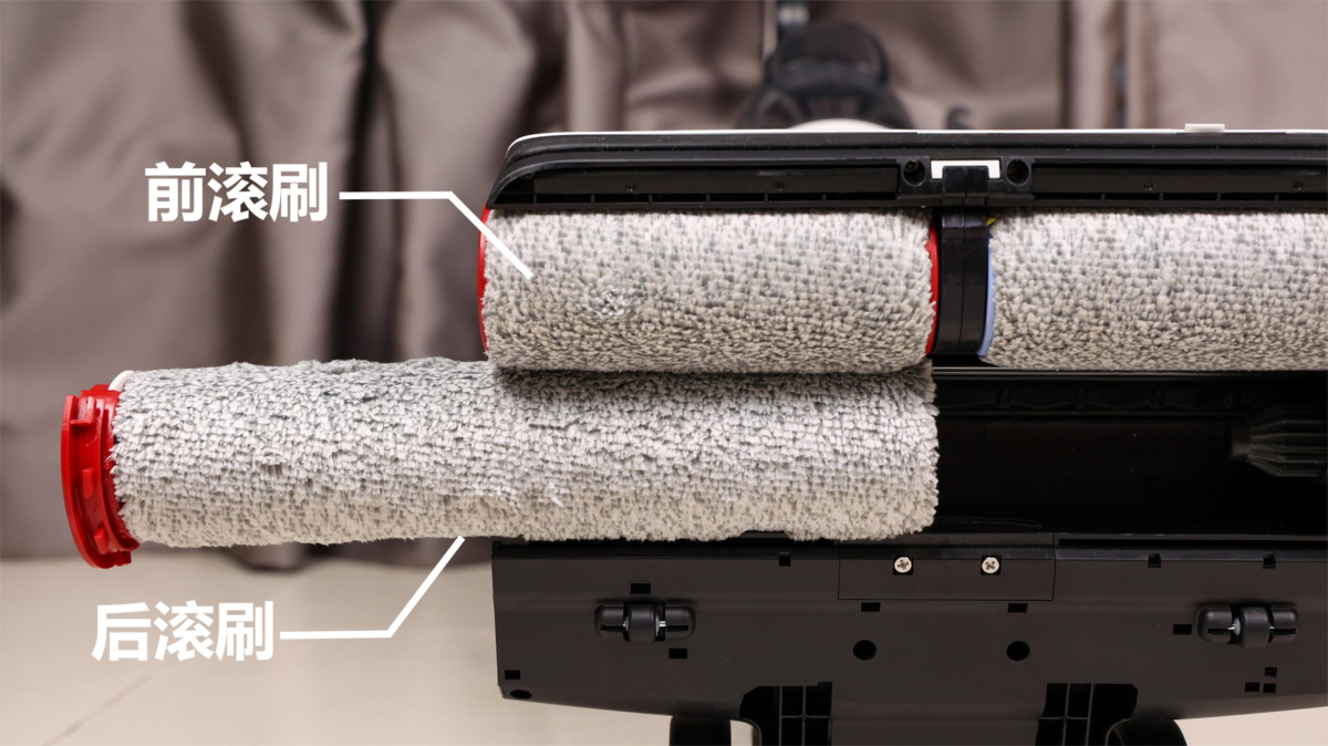 对于一款洗地机来说,擦地能力是衡量其是否好用的核心指标,而擦地能力又主要通过滚刷对地面的摩擦、力度与时长来体现。石头A10 Plus首先沿用了前代双滚刷的设计,通过两个滚刷对向旋转来增强擦地时长,前刷向后擦、后刷向前擦,一次相当于对地面清洁两遍。